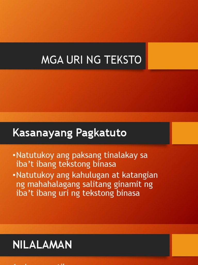Hindi na ako malilito pa kahit kailang kung alam ko agad ang uri ng teksto ng aking binabasa. Isang malaking tulong na hindi nakakatulong ang ganitong bagay. Bilang isang mag-aaral ang pinakamahalagang aspeto ng edukasyon ay ang pagkakaroon ng tamang impormasyon.