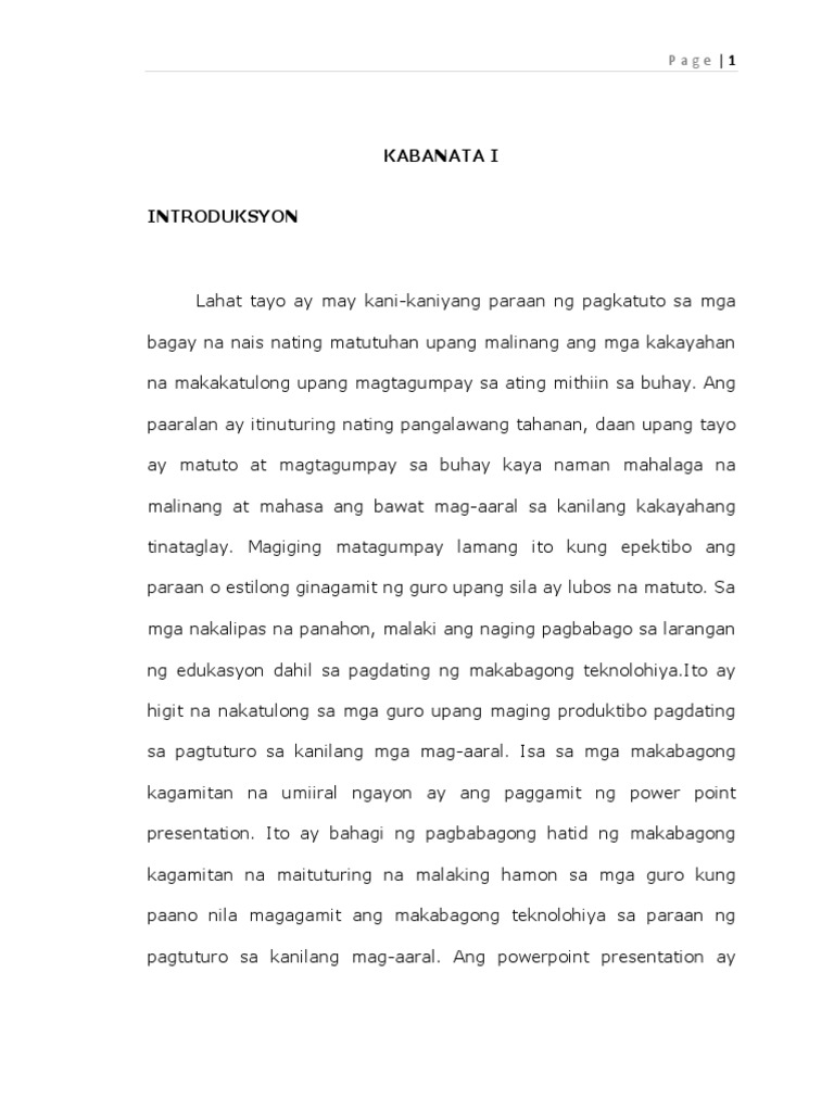 Epektibong Paggamit ng Powerpoint Presentation Bilang Pamamaraan sa Pagkatuto ng mga Mag-aaral sa Asignaturang Filipino ng STEM 11-A Taong Panunuran 2017-2018 1 Kabanata I SULIRANIN AT SALIGAN NG PAG-AARAL Panimula Education is the most powerful weapon which you can use to change the world. Pinalawak pinadali pinatipid ng social media ang paraan ng komunikasyon at pagbabahagi ng impormasyon. Sa paggamit ng text Huwag gumamit ng higit sa dalawang font.