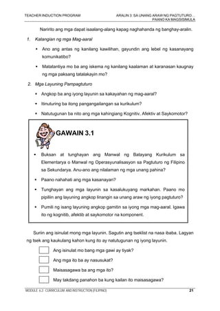 Ang wikang Filipino ay tulad ng pagbabayanihan na sumasalamin sa mabuting. Ngunit kailangang tandaan na importanteng bigyan sila ng oras na matuto ng ibang kakayahan pa nila. Ang wikang ito ay mayroong mga kahali-halinang salita na sumasalamin sa ating kultura at pambansang pagkakakilanlanan na tayo ay isang bansang malaya.